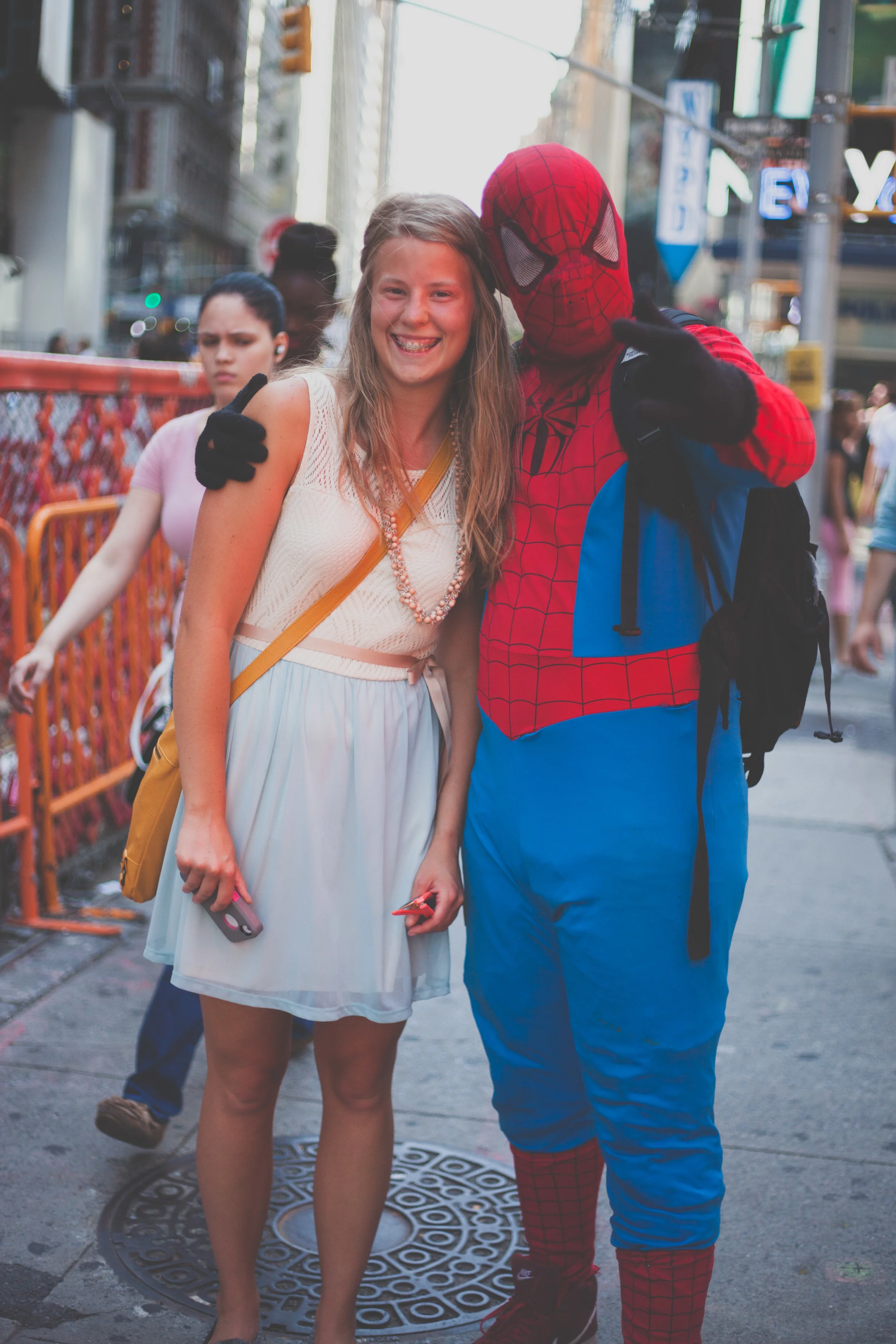 By this time we were all pretty exhausted and in terrible moods. It was boiling hot out the entire day! So hot that when you sat on the top of a bus for five minutes you left a puddle on the seat..no joke.. it happened. I know, gross! But anyways...we were all kind of crabby until we saw Times Square! I want to say it was my second favorite part of New York City...visually it's the best thing I have ever seen! While we were there Victoria got attacked by two asian Hello Kitty's and Lauretta got hit on by Spiderman! We also bought iced coffee from a two story McDonalds!